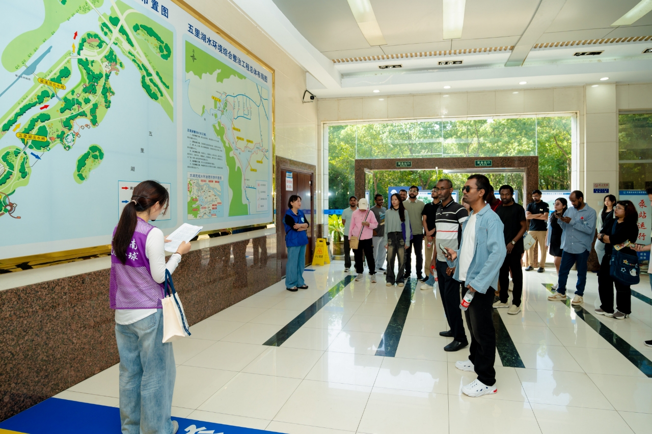 最后一站是蠡湖展示馆。展馆通过沙盘模型、多媒体影像和历史资料,系统性地展示了蠡湖地区从昔日污染严重到如今水清岸绿的沧桑巨变。这场“穿越时空”的旅程,让留学生们对无锡乃至中国在水环境保护和可持续发展道路上所付出的巨大努力与取得的辉煌成就有了全面而深刻的认识。