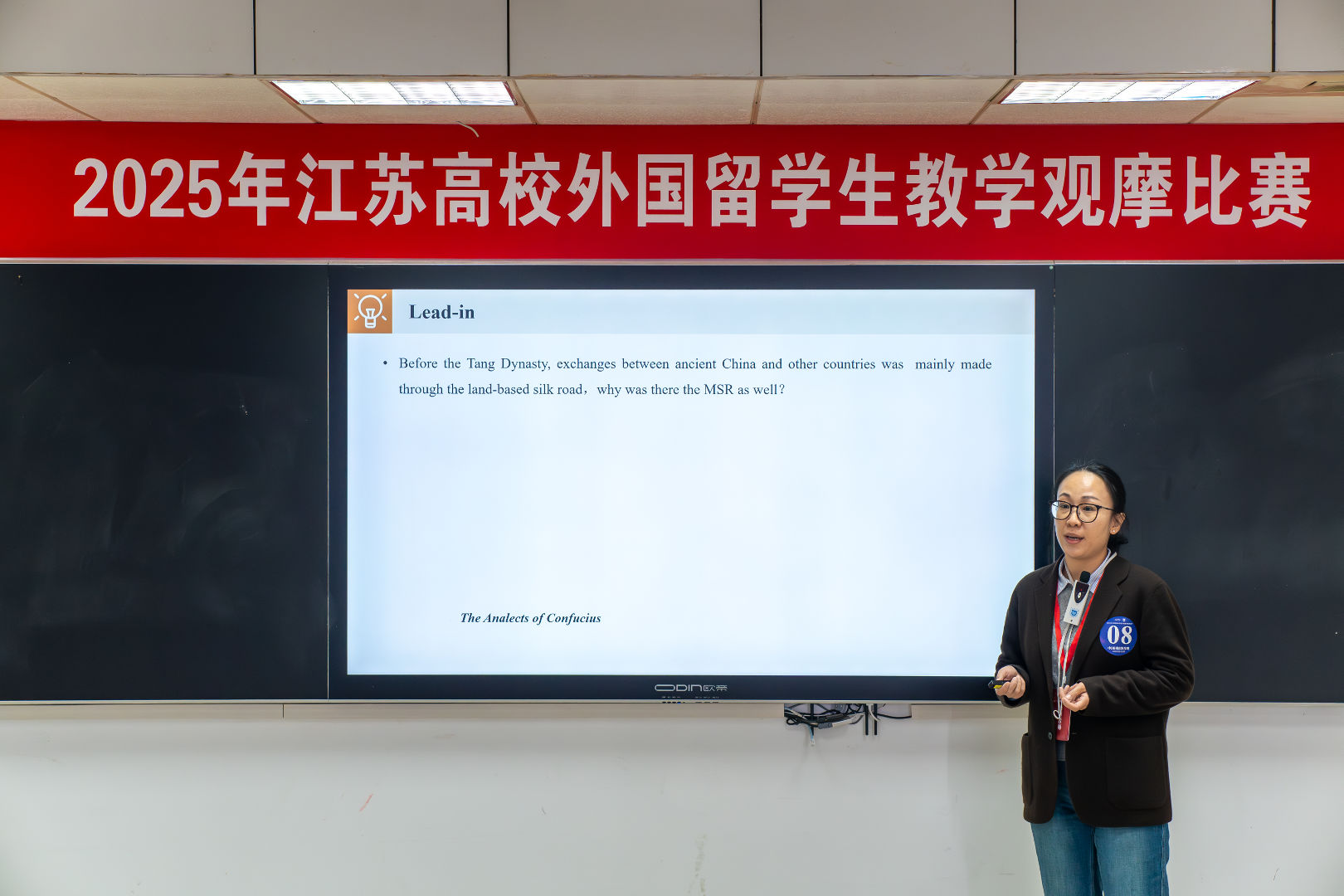2025年11月29日,由江苏省教育厅指导、江苏省高等教育学会外国留学生教育管理研究委员会主办的“2025年江苏高校外国留学生教学观摩比赛”在南京邮电大学圆满落幕。参赛的六名参加教师在比赛中表现优异,食品学院盛利娜老师与人文学院王利峰老师荣获一等奖,纺织科学与工程学院徐荷澜老师、苏静老师、崔莉老师与人文学院肖清老师荣获三等奖,我校荣获“优秀组织奖”。