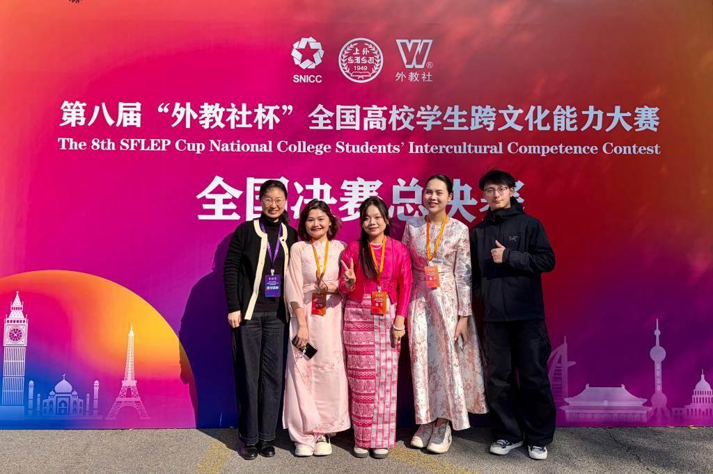 2025年12月11日至14日,第八届“外教社杯”全国高校学生跨文化能力大赛全国决赛与总决赛在上海外国语大学成功举办。经过校赛、省赛的激烈角逐,共有北京大学、复旦大学、南京大学等76支中国学生组队伍、25支国际学生组队伍晋级全国决赛,我校国际学生团队荣获全国一等奖。