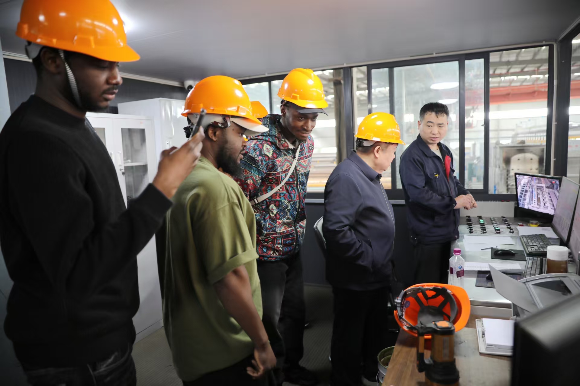 4月14日,我校来自尼日利亚六名国际学生由国际交流合作处副处长王胤带队走进校友企业——德新钢管有限公司开展参观交流活动。